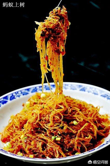 蚂蚁上树其实是一道地地道道的川菜,就是将肉末与粉丝用辛辣的调味料伴炒而成的。爆过香的肉末与吸瞒辛辣味的嫩粉丝,充分的展现了川菜的香辣好滋味。因细小的肉末如蚂蚁般分布在粉丝上,恰似爬上树的蚂蚁而得名。
