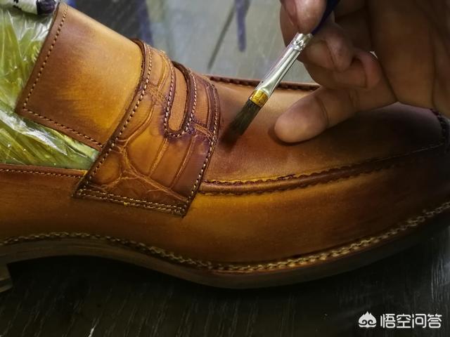 鞋底组合完毕后,进行整饬工作,可以先用海萝胶处理鞋底,使得真皮大底具备更好的硬质,以免容易磨损。鞋面如果是擦色皮,可以进行涂色,达到客户要求的颜色。