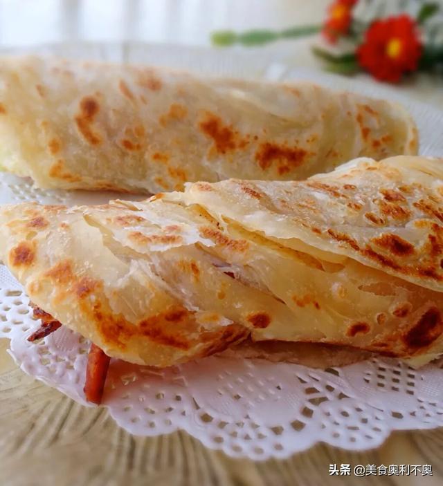 做手抓饼醒面的时间一定要够,不然面团就会回缩,很难擀薄。手抓饼要把面筋擀薄口感才会丰富。