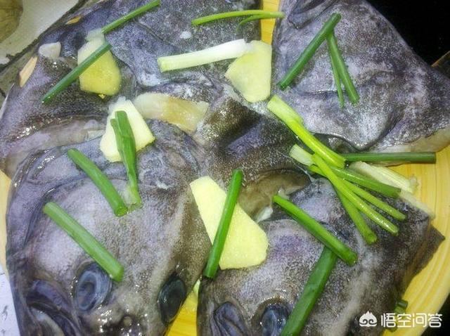 6.在放上鸦片鱼头,在放上生姜片,葱段。