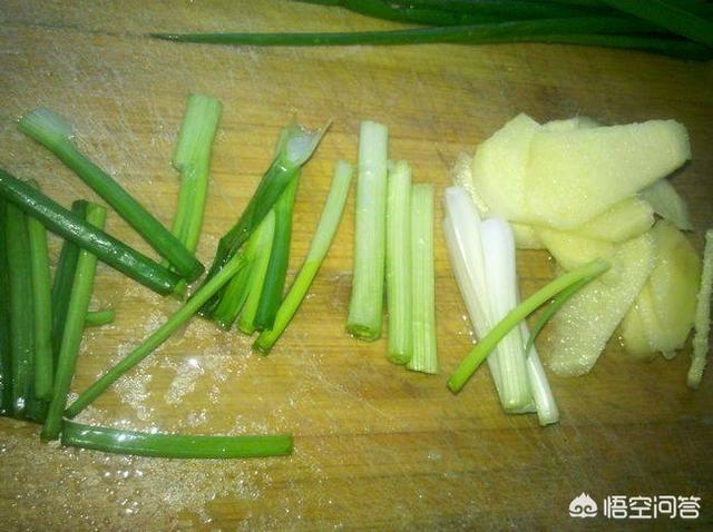 4.准备葱段和生姜。