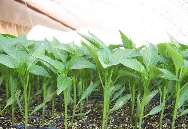 辣椒苗期的温度管理是培育出又壮又好苗的关键一步,播种后种子发芽出土这个时间段要把温度保持的比较高点,这样出的苗快整齐度好,白天温度为30度左右、夜温保持在18~20度之间为宜。等小苗出去后变绿,这时要适当的降低温度,白天降到22~25度,夜温降到15~18度之间、这样管理目的是防止幼苗徒长,出现高脚苗,所以辣椒苗期管理不要大意,一定要保证叶片颜色为绿色而肥大、叶柄长短适中生长健壮,才是最好的辣椒苗。
