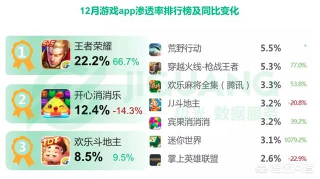 从2017年12月份游戏APP的渗透率变化来看,王者荣耀仍然稳居第一的宝座,而在这份排行里,今日头条也落后于王者荣耀,这样的成绩证明了王者荣耀并没有像媒体所说的逐渐没落。