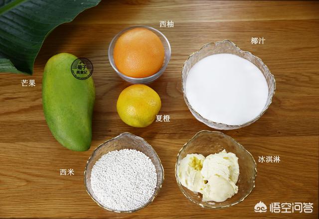 一道港式甜品 主要是芒果、西柚、西米、椰浆、白砂糖 没有用荔枝的