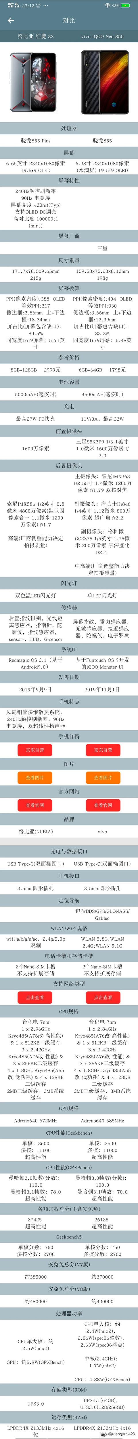 虽然说性价比不知道哪个更高,但是选择起来还是挺简单的。首先一个就是根据预算来选,要是预算不高的话那果断是选neo 855版,预算充足的话可以考虑一下这个红魔3s。如果让我选的话,我想我是会选择neo 855版,价格便宜很多,骁龙855版完全够用了,而且这款手机其他方面表现也不错,买来用个几年到时候换个5g手机还不是美滋滋。