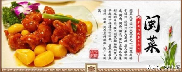 流派:由福州、泉州、厦门等地发展起来,并以福州菜为其代表。