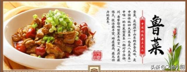 1.鲁菜; 鲁菜讲究原料质地优良,以盐提鲜,以汤壮鲜,调味讲求咸鲜纯正,突出本味。容华贵、中正大气、平和养生 (咸鲜为主火候精湛 精于制汤 善烹海味 注重礼仪)