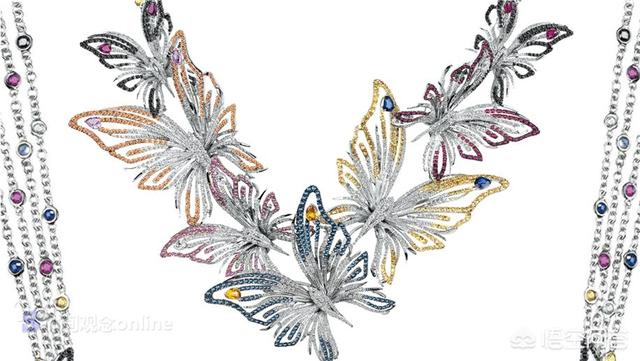 这一系列中的项链由色彩和大小皆异的蝴蝶串联而成。中间有两只可拆分的蝴蝶,可用作吊坠或胸针。项链另有一排或三排彩色钻链,与蝴蝶颜色相同,用于日常佩戴。