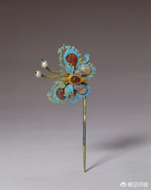 而在中国传统文化中,又以蝴蝶元素居多,蝶”与“耋”同音,寓意延年益寿,在清宫旧藏中可以寻到以蝴蝶为元素的簪子。今天的回答就从两支东方的簪子开始。