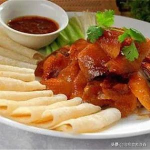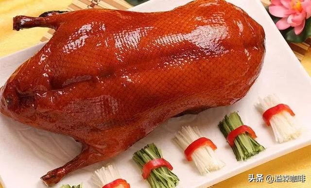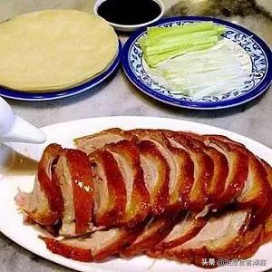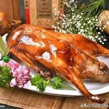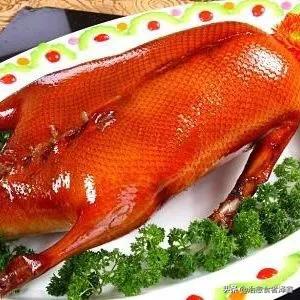 烤鸭”的来源: 早在明朝时就已成为北京官府人家中的席上珍品。朱元璋建都南京后,明宫御厨便取用南京肥厚多肉的湖鸭制作菜肴。为了增加鸭菜的风味,厨师采用炭火烘烤,成菜后鸭子吃口酥香,肥而不腻,受到人们称赞,即被宫廷取名为“烤鸭”。以后明朝迁都北京,烤鸭技术也带到北京,并被进一步发展。由于制作时取用玉泉山所产的填鸭,皮薄肉嫩,口味更佳。烤鸭很快就成为全国风味名菜。北京有名的烤鸭店“全聚德”,便是明朝时开业的。到了清朝,官吏们常常收购北京烤鸭,供皇帝及其亲属享用。据《竹叶亭杂记》记载:“亲戚寿日,必以烧鸭相馈遣。”烧就是烤,可见烤鸭还成了当时勋戚贵族间往来的必送礼品。又有《忆京都词》这样写道:“忆京都,填鸭冠寰中。焖烤登盘肥而美,加之炮烙制尤工。”