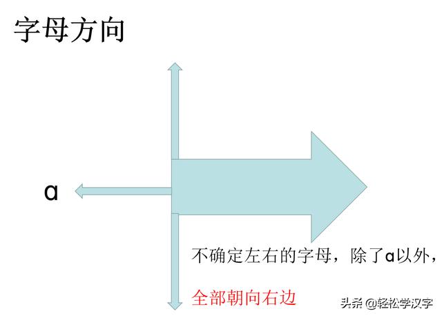 第二步,认为的给字母确定一个方向,就是右边(因为后面用的是形象记忆法,也就是把字母形象化,就像看简笔画一样,一看就能看出来是什么,但没法确定朝哪边,所以确定方向很重要)