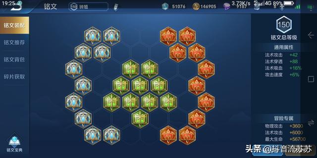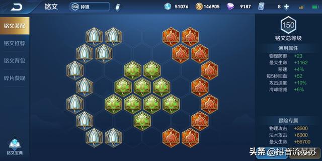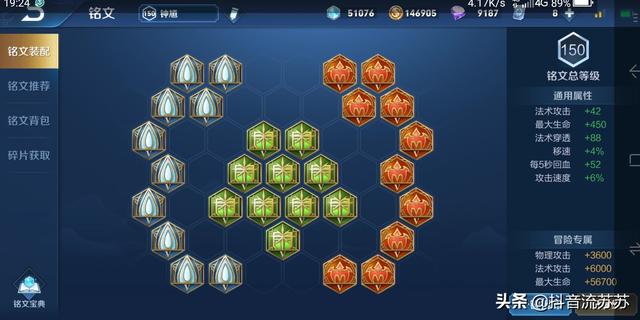 第四套铭文的名字为调和88穿,绿色红色的不变,把10贪婪换成10个调和,这套铭文是综合性的,既可以增加移速还可以增加续航能力,还可以增加一点坦度,性价比非常高!