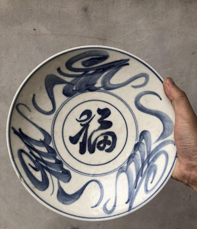 目前市场上这样的清末民初民窑青花瓷比较多,是瓷器普通市场的主流,纹饰主要有灵芝、花篮、鱼、双喜、缠枝莲等,胎质和画工普遍比较简单粗糙,是当时民间十分普遍的生活用品。有的甚至在如今的农村都还有人当成吃饭的普通盘子在使用,也是下乡铲地皮的朋友最容易收到的老瓷器了。