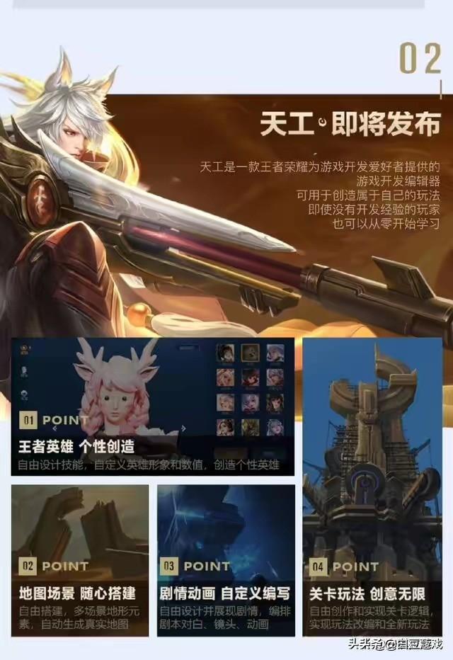 王者荣耀游戏模式又被曝出改动新方向,王者官方将会推出“王者荣耀地图编辑器——天工”,全名叫“万象天工”,“天工”被官方评价很高,称其可以释放王者玩法的无限可能,玩家可以参与到游戏玩法的创作中,可以体验全新玩法。