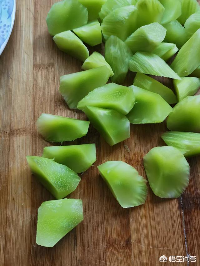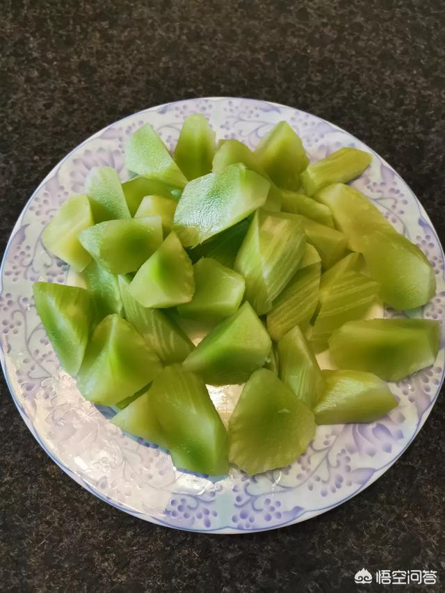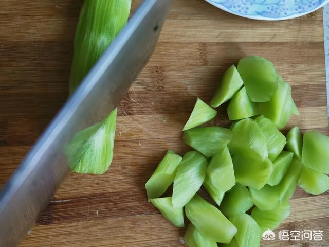 你说的莴苣该怎样切三角形,其实就是我们通常说的切滚刀块: