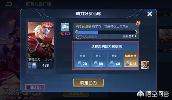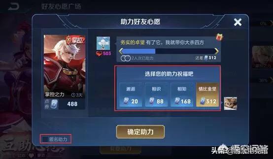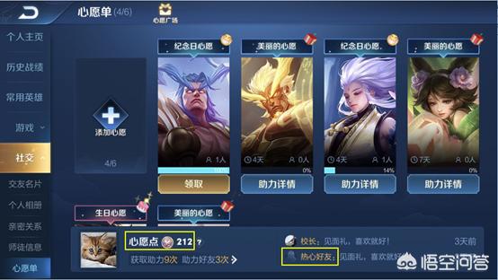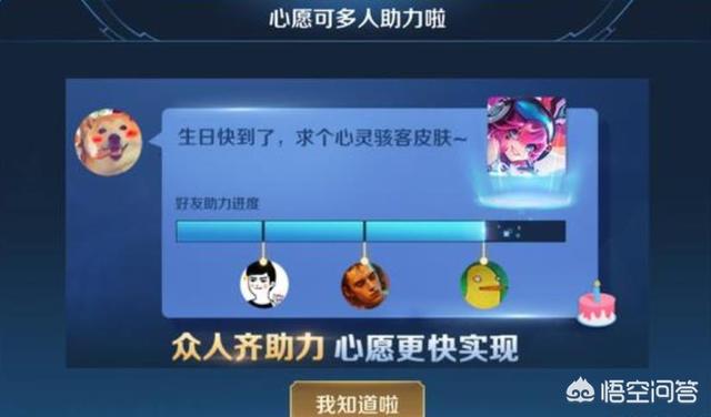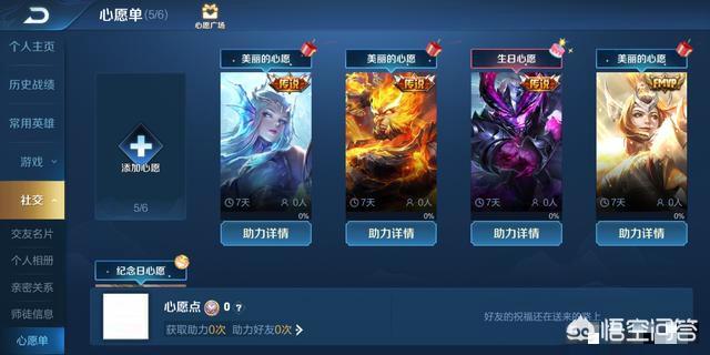 总之,这个活动就是通过收集相应的心愿点,而这个心愿点可以通过好友的助力,拿到这个心愿点,以后你就可以去兑换你们想要的永久英雄了,还可以添加1些新的心愿,这个活动看起来就比起之前更加有意思了,不像之前就是直接送皮肤之类的,不是送皮肤一下子需要好几百点券,这样的话对于每个人都是要求挺高的。