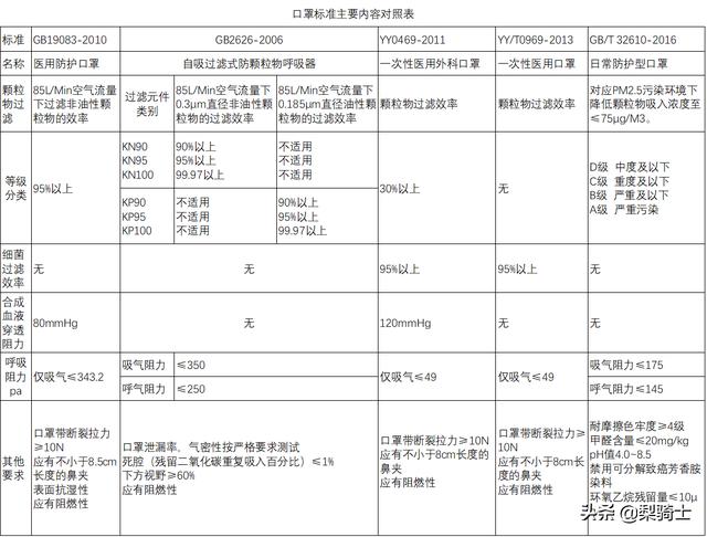 目前来说,我国的口罩有五大标准,主要区别如下: