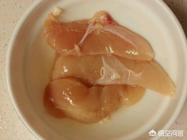 我们购买的鸡胸肉,大多是冷冻品,难免腥味比较重。我们在烹饪时,建议用淡盐水浸泡除腥。