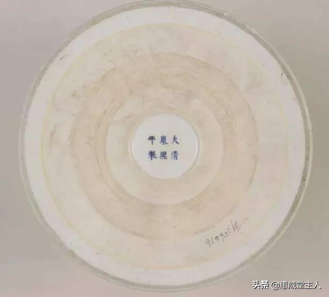 再说玉壁圈足底,清代玉璧足的精品多出自康熙、雍正时期,康熙玉壁底胎质尤为沉重,内多间杂黑或黄色的小斑点,但瓷质好,工艺好,手抚釉面平爽,份量较重。康熙的中后期在玉璧形削足的内足里广泛运用同心圆状的旋纹,其份量略轻。雍正朝玉璧足出现了削足过肩的现象,乾隆玉璧足在胎质及制作工艺上远不及康、雍,嘉道以后玉璧足逐渐消失,总体看清代的削足还是以带釉底的削足为主体。