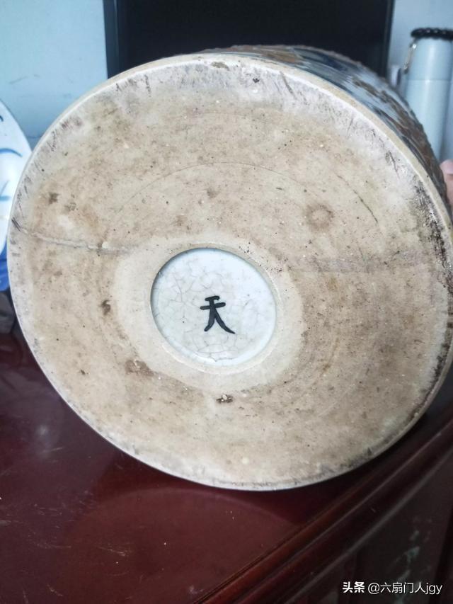 要看您这件笔筒,出发点很多,咱们就先从“天”字落款开始吧:天字款的瓷器最早出现于明朝成化时期,天字在古时有天子之意,明成化是继永宣以后,瓷器烧制的又一个高峰期,最有名的瓷器种类是斗彩瓷。从成化年间开始,瓷器的款识越来越规范化,不仅出现了六字款外加双方框的新体式,还出现了特有的“天”字款瓷器。